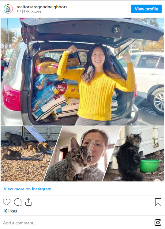 Carrie Lu, an agent with Signature Real Estate Group in Las Vegas, has always had a soft spot for cats. As a volunteer with a local vet surgery clinic, Lu saw firsthand how spaying and neutering can help control the stray cat population and alleviate animal suffering. Lu volunteers as a trapper, helping to corral the estimated 200,000 stray cats in Las Vegas and bring them in for sterilization. She also runs regular cat food drives to help support the volunteers who feed the local strays. So far, she’s donated 4,000 pounds of cat food. “This not only helps the homeless cats,” says Lu, “it also helps the people who care for them.”