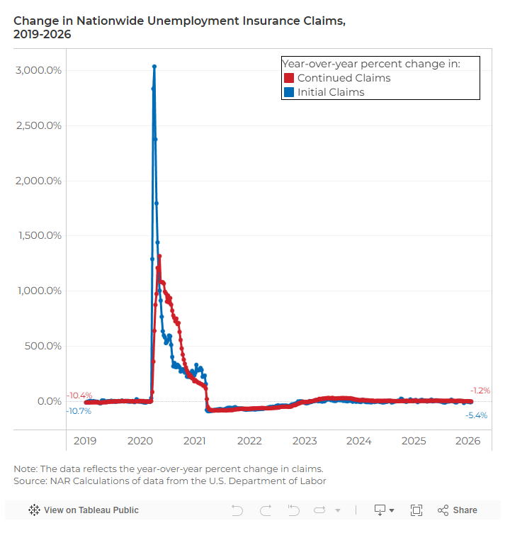 Unemployment insurance claims data are among the timeliest labor market indicators available. Staying up to date on changes in unemployment can help anticipate shifts in local markets, including homebuyers’ income, homeowners’ ability to keep up with mortgage payments, and even migration trends.